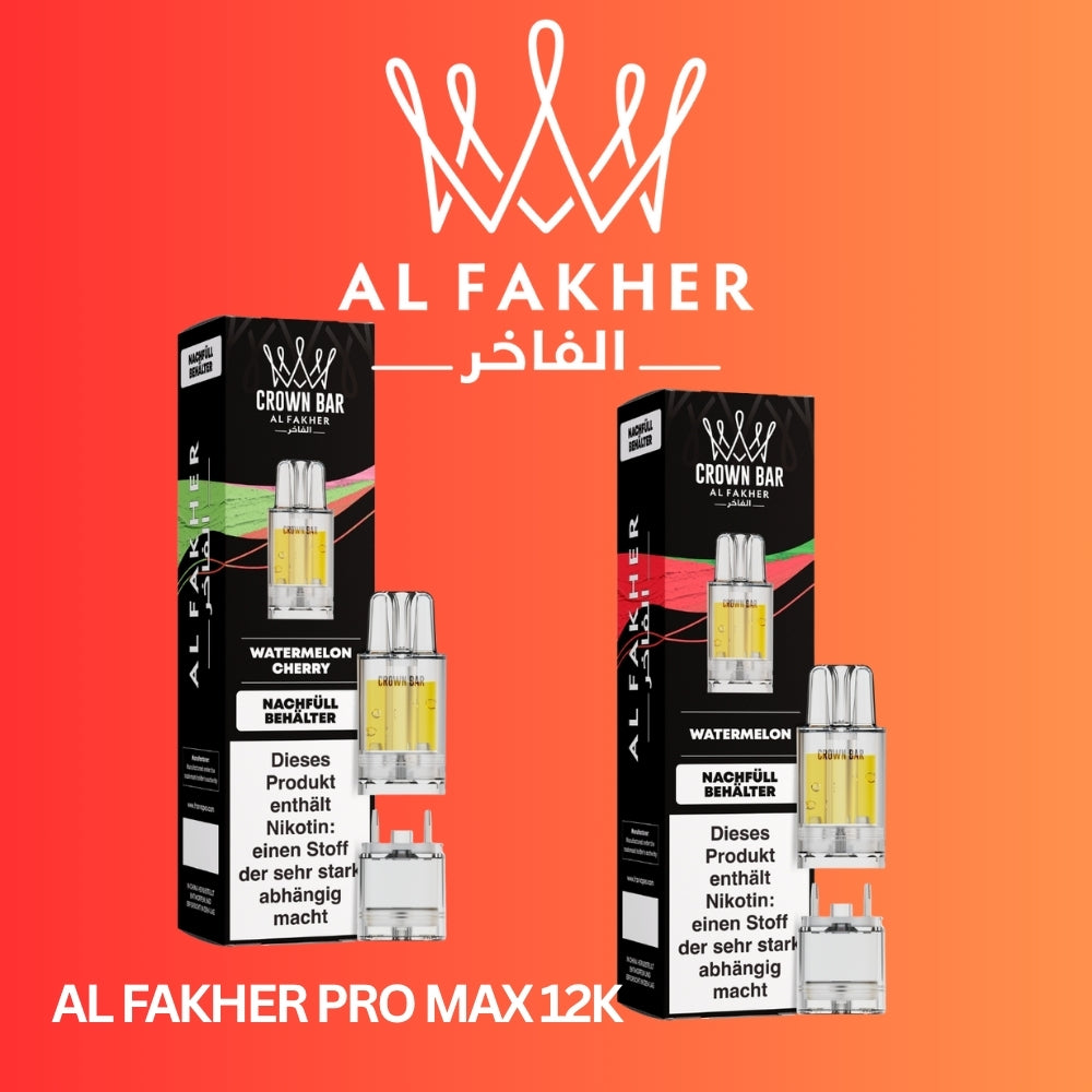 Der Pro Max 12K Pod von Al Fakher steht für zuverlässige Leistung, hohe Reichweite und authentischen Geschmack. Ideal für alle, die kompromisslos dampfen möchten – in Kombination mit moderner Technik und einfacher Handhabung. Ein Must-have für Nutzer des Pro Max Systems.